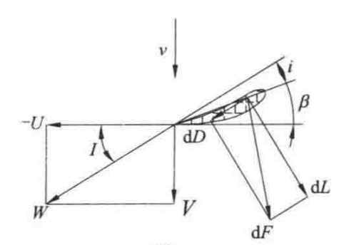 ( )圆周速度U和风速V的矢量和为合成风速W,倾斜角I为合成风速W和旋转平面的夹角,如图。扭角为0,则