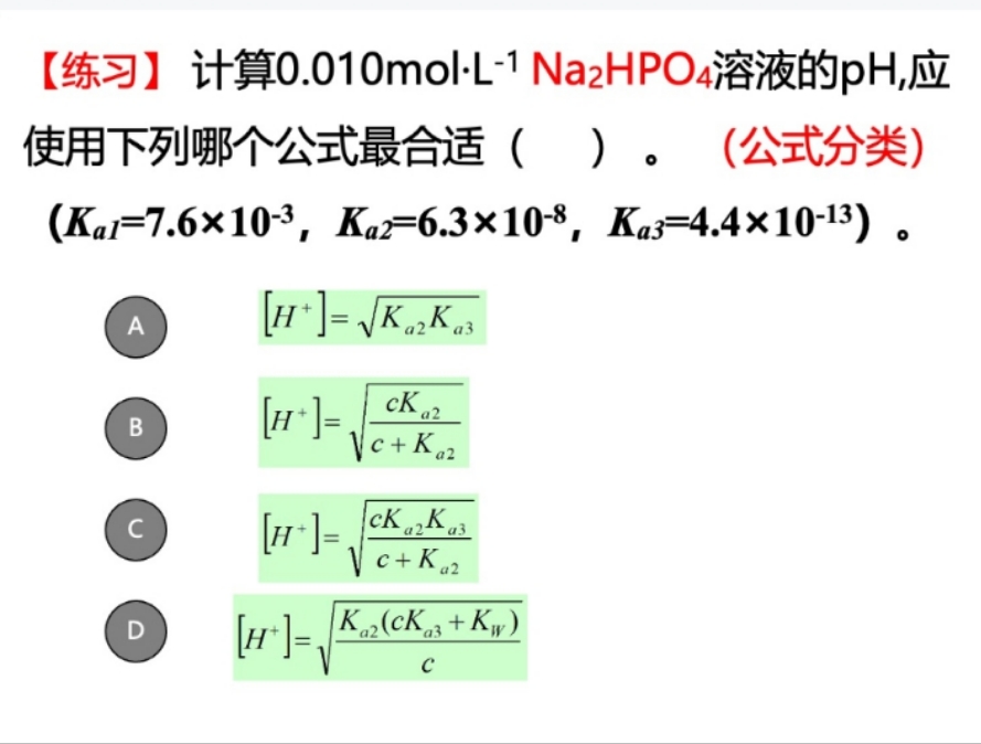2、.计算50 mL0.10 mol·L-1的H3PO4中加入100 mL 0.10 mol·L·1NaOH形成溶液的pH=()已知 H3PO4的pKa,分别为2.17、7.21、12.32。