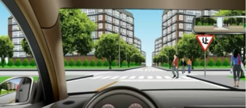 如图所示,机动车驾驶人驾车通过此路口时,应减速慢行,时刻注意观察行人的动态变化,因为行人可能随时改变方向。