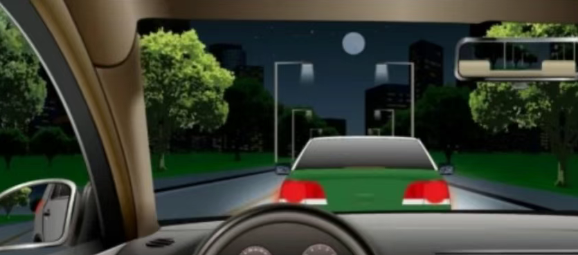如图所示,夜间驾驶机动车与同方向行驶的前车距离较近时,以下做法错误的是什么?