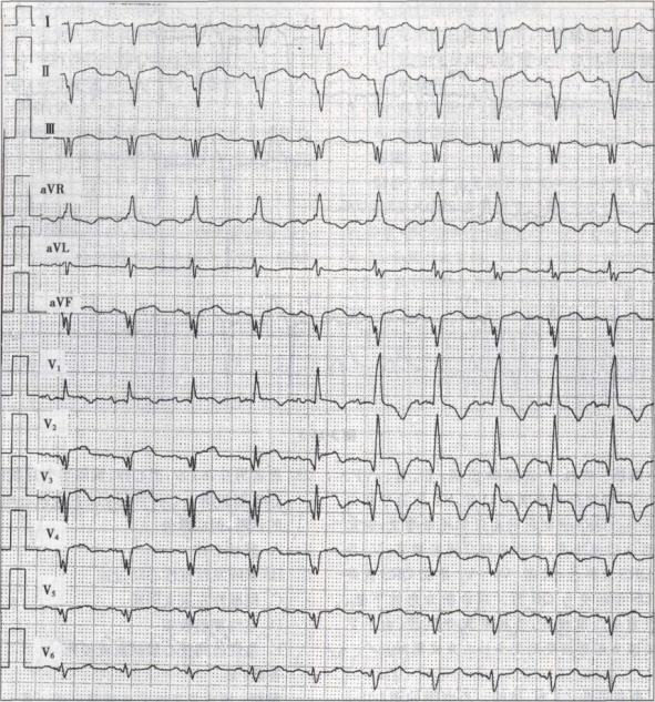 196.男,67 岁,冠心病。心电图检查如图所示。该患者可诊断为