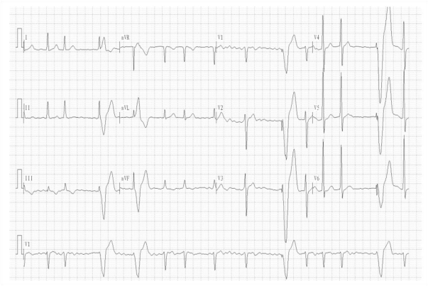 193.男性,67 岁,高血压病史 8 年,长期口服利尿剂降压治疗。心电图如图所示,最可能的诊断为
