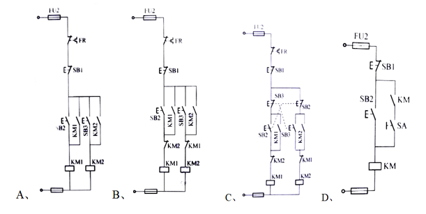 18.如下图各控制电路,能够实现电动机正转、反转,并且实现互锁的是( )。