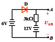 33、电路如下图所示,忽略管压降,求输出电压Uab=()V。