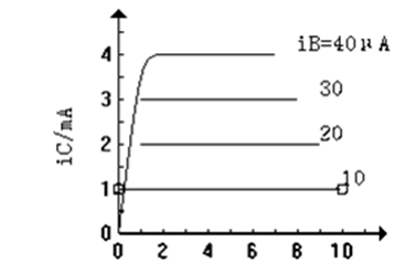 16、下图所示为三极管的输出特性。该管在UCE=6V,IC=3mA处电流放大倍数β为()。