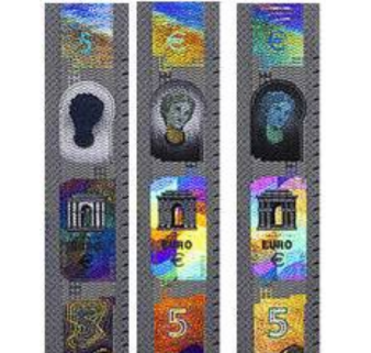 前后晃动观察,第二版欧元全息条呈现人像、建筑图案、欧元名称或符号、面额数字,并有( )效果。