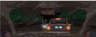1477. 如图所示,夜间驾驶机动车在没有照明的路段,当与前车跟车行驶距离较近时,可以开启远光灯照明。