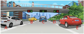 1445. 在图中所示有车道信号灯的路段,请判断哪辆机动车行驶的车道是正确的?