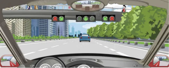 1423. 驾驶机动车在路口直行遇到这种信号灯应该怎样行驶?