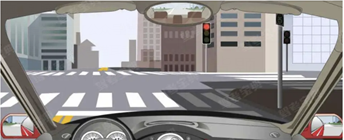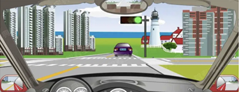 1424. 驾驶机动车行驶到这个位置时,如果车前轮已越过停止线可以继续通过。