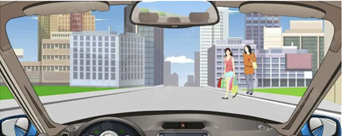 580. 如图所示,驾驶机动车遇到这种情况,以下做法正确的什么?