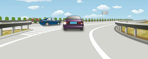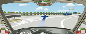 427. 驾驶机动车驶离高速公路时,在这个位置怎样行驶?