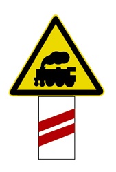 421. 如图所示,这个标志设置在有人看守的铁路道口,提示驾驶人距有人看守的铁路道口的距离还有100米。