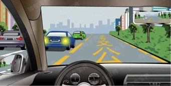 346. 如图所示,驾驶机动车遇前方车流行驶缓慢时,借用公交专用道超车是正确的。