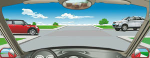 286. 在路口直行时,遇这种情形如何通行?