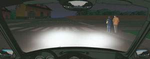 255. 如图所示,在这种情况下通过路口,交替使用远近光灯的目的是什么?