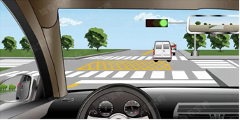 209. 如图所示,在这种情况下驶近路口,车辆可以怎么行驶?