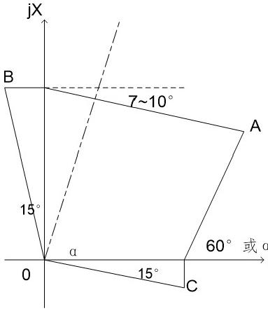 图11阻抗特性图(1)AB: 躲末端过渡电阻。(2)AC: 躲负荷阻抗,减小振荡对阻抗的影响。(3)B0 、C0: 躲反向出口经过渡电阻故障,保证正向出口经过渡电阻可靠动作。