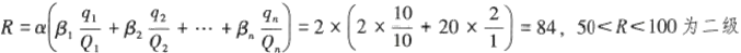 【单选】某化工生产经营单位边界扩展500 m 范围内常住人口数量为130~150人。该 单位在生产区设计量为10t 的储罐中存放了3t 的液氨,设计量为2t 的储罐中存放了 0.5t 磷化氢。上述储罐位于同一防火堤内。其中液氨的临界量Q 和校正系数β分别为 10 t、2.0,磷化氢的临界量Q 和校正系数β分别为1 t、20.0(厂区边界向外扩展500m 范围内常住人口数量50~99人的校正系数α为1.5,100人以上的校正系数α为2.0)。 该单位构成重大危险源的等级是( )。