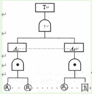 【2022年 ·单选】为避免发生电梯剪切事故,专业人员建立了剪切事故故障树,如下 图所示。T 代表电梯发生的剪切顶上事故,A₁ 代表超载溜车,A₂ 代表电梯系统失效溜 车。经统计分析得出,超载保护开关失效事件B₁ 概率为0.1、轿厢载重量超标事件B₂ 概率为0.05、对重与轿厢重量相差较大事件B₃ 概率为0.05、曳引机故障事件 B₄ 概率 为0.1。根据故障树定量分析方法,电梯在运行过程中,发生的电梯剪切事故概率是 ( )。
