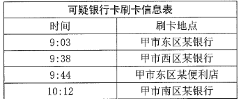 2.甲市公安机关在侦办一起电信诈骗案件时,获取了犯罪嫌疑人在本市三个相邻区使用过的一张银行卡。下表是该银行卡某日上午在甲市刷卡的时间和地点的信息。据此信息,公安机关可以采取的侦查措施有:()(2019年公安联考)