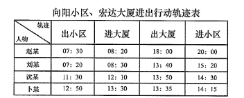 21.某日H市A 派出所接群众报警,13时30分辖区宏达大厦发生一起盗窃案件,派出所民警老王和小胡接报后立即赶赴现场。民警查看现场视频和走访调查后发现,嫌疑人从向阳小区来到宏达大厦实施盗窃后,径直步行返回了小区,步行时间大约40分钟。经排查,赵某、刘某、沈某、卜某四人有一定嫌疑,民警小胡按四人活动时间制作了向阳小区、宏达大厦进出行动轨迹表(见下表),其中嫌疑最大的是:()(2024年广东省考)