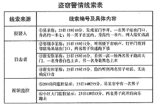 20.2023年10月23日15时10分,宁南县盛世嘉园小区5幢203室业主易某回家时发现家中房门半开,家里有两名陌生人看见易某后慌忙逃跑,易某立即拨打报警电话,民警到达现场后,通过现场走访和调取视频监控获取有关线索(见下表)。为进一步开展工作,下列信息中对追踪嫌疑人有价值的是: ( ) (2024年国考)