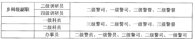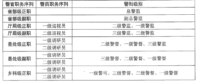 20.公安机关领导成员和内设综合管理机构警官职务序列、警员职务序列以及警衔级别对照表如下: