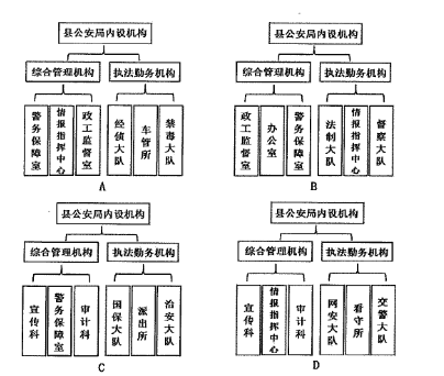33.根据《公安机关组织管理条例》规定,县级以上地方人民政府公安机关和公安分局内设机构分为综合管理机构和执法勤务机构。下列关于某县公安局的内设机构图,表述正确的是:()(2024年多省联考)