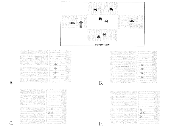 37.民警战术素养应从细节做起。下图是某十字路口示意图,民警小李带领巡组在十字路口正常通过斑马线时(1号队员是小李,2、3、4号队员是警务辅助人员)。不宜采用的巡逻战术队形是:()(2019年公安联考)