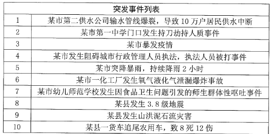 1.按照《突发事件应对法》规定,突发事件包括自然灾害、事故灾难、公共卫生事件和社会安全事件等四类。对下表中所列突发事件进行分类,属于同一类的有:()(2021年黑龙江省考)