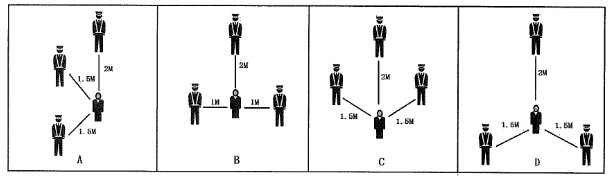 13.小南门派出所三名民警在南屏步行街巡逻时,发现一名男子有扒窃嫌疑,遂决定对该男子继续盘查,下列盘查站位正确的有:()(改编自2024年公安联考)