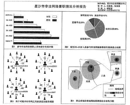 25.(七)根据以下情境材料,回答第23~26题。近年来,电信网络诈骗人员为规避公安机关打击,通过非法网络兼职平台将专业要求不高的任务环节分包给普通网民实施。这种非法网络兼职平台通过各种引流渠道吸收网民加入,逐步发展为专业化的网络黑灰产业,具有很大的社会危害性。星沙市公安局情指中心针对此类情况开展专题研判等工作,并制作了“星沙市非法网络兼职情况分析报告”(见下图)(2022年多省联考)
