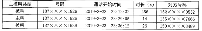 6.(二)根据以下情境材料,回答第5~8题。近年来,智能快件箱走进城市小区,群众利用智能快件箱进行自助存取件。给生活带来极大便利。由于这种存取方式的私密性,涉毒人员很快盯上智能快件箱,进行非接触毒品交易。2019年3月24日,某市快递员在对小区智能快件箱断电维修时,在数个储物格内发现包装相同的小件包裹,十分可疑,遂报警。经鉴定,包裹内的可疑物质为冰毒,共计350克。(2020年公安联考)下图是涉毒嫌疑人一段时间的手机话单。请据此分析,最有可能是吸毒嫌疑人的号码是:()(单选)