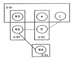 6.公安机关在对一涉案团伙展开侦查时得知:该团伙涉及蓝剑公司(股东:张某、王某、李某)、志庆公司(股东:张某、赵某)、海文公司(股东:王某、刘某)、华创公司(股东:韩某)。其中,海文公司是华创公司的客户:赵某和韩某接触密切。需要进一步确认的信息有:李某和刘某曾共进晚餐,刘某与赵某曾有联系。下图是侦查员依据以上线索绘制的关系图,其中方框表示公司,圆圈表示人物,实线表示已确认的信息,虚线表示未确认的信息。仔细观察下图,说法正确的有:( ) (2020年多省联考)