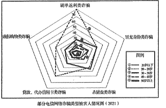 7.中部地区某市公安局绘制了“部分电信网络诈骗类型被害人情况图”(见下图),用于分析不同类型电信网络诈骗被害人年龄分布特点,以提高防范针对性。根据下图,下列选项中表述正确的有: ( ) (2022年多省联考)