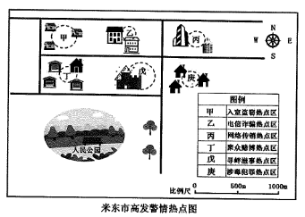 34.米东市公安局与米东大学研究团队合作开发了警情预测系统,该预测系统把警情高发重点区域以热点图的形式直观地显示出来,生成了“米东市高发警情热点图”(见下图),科学引导巡防力量开展针对性巡逻。根据图中所示信息,下列巡逻顺序最恰当的是:()(2024年国考)