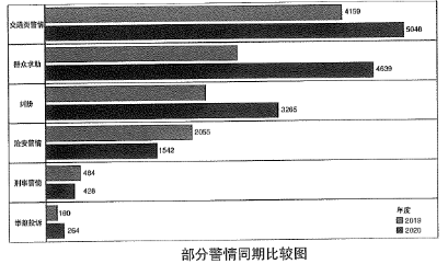 33.某县公安局对2019年和2020年的各类警情进行比对分析,制作了部分警情同期比较图(如下图所示)。根据该图,以下分析结论不正确的是:()(2021年多省联考)