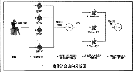 17.2024年11月,新兴市公安局经侦支队在工作中发现,张×虚构“新型桥接”网络技术项目进行非法集资,金额高达1240万元。立案侦查后,侦查员小涂对调取的相关数据进行梳理,制作了“案件资金流向分析图”(见下图)。从图中信息来看,下列选项中对案件分析不正确的是:()(2025年国考)