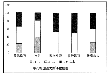 28.(八)根据以下情境材料,回答第28~30题。未成年人违法犯罪及被侵害案件一直是社会关注的热点。涉及未成年人案件不仅给学校和家庭造成严重困扰,也给社会治安稳定带来了巨大隐患。如何遏制未成年人违法犯罪,防范未成年人被侵害,保护未成年人是当前面临的一个重要问题。2019年10月21日,《中华人民共和国未成年人保护法(修订草案)》提请全国人大常委会会议审议。修订草案着力解决校园安全和学生欺凌等现实存在的突出问题。甲市公安局力求摸清本市校园暴力犯罪情况,探索有效治理方法。市局指派民警小刘对校园暴力案件数据进行收集和分析。(2020年国考)根据有关数据整理,下列对甲市校园暴力案件未成年人被告数据分析正确的有:()(多选)