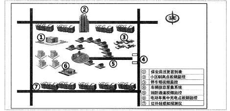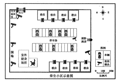 34.荣生小区内有8栋老旧住宅楼(见下图),小区安防设施老化,防范措施薄弱,其间发生多起盗窃案件。为积极推进平安社区建设,社区民警老崔、辅警小李对该小区进行了安全检查,根据图中该小区的情况,应重点检查的安防设备是:()(2024年国考)