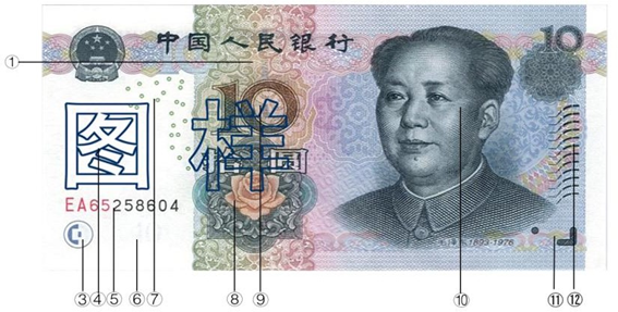 283、10 元,下列选项中对图片上标⑫防伪特征名称描述正确的是()。