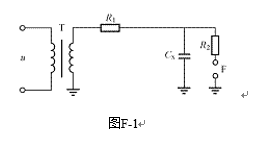 当球隙放电时,若流过的电流较大,会使铜球烧坏,因此在球隙上串一电阻R2(按1?/V来选)以减少流过球隙的电流。R2还有一个重要作用,就是起阻尼作用,在加压试验中,如球隙击穿放电,电源被自动断开后,由于被试品Cx(相当于一个电容器)已充电,因此电容中的电能通过连线和球隙及大地形成回路(见图F-1)放电。因为连线中存在电感L,所以电容中的电能CU2/2,转为电感中的磁能LI2/2,电能与磁能之间的变换会形成振荡,可能产生过电压,损坏被试品,串上R2后可使振荡很快衰减下来,降低振荡过电压,因此,R2也称阻尼电阻。R1的作用是当被试品Cx击穿时,限制试验变压器输出电流,限制电磁振荡过电压,避免损坏仪器设备。