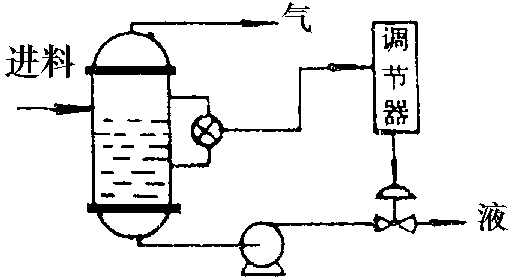 54.图示一液面调节回路,工艺要求故障情况下顶部出料送出的气体中不许带有液体,下述说法正确的是()。