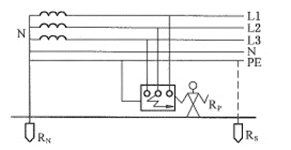 7.间接接触触电的防护措施有保护接地和保护接零。根据接地保护的方位方式不一样,系统分为rr系统、TT系统、TN系统,下图表示的系统是()。