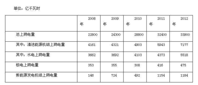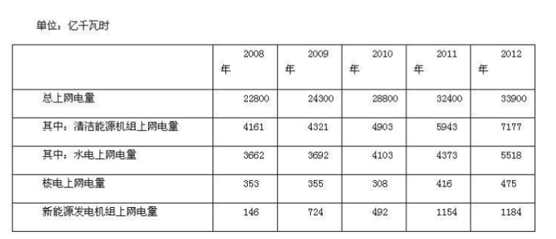 关于2008~2012 年间国家电网公司清洁能源的发展,能够从资料中推出的是:( )