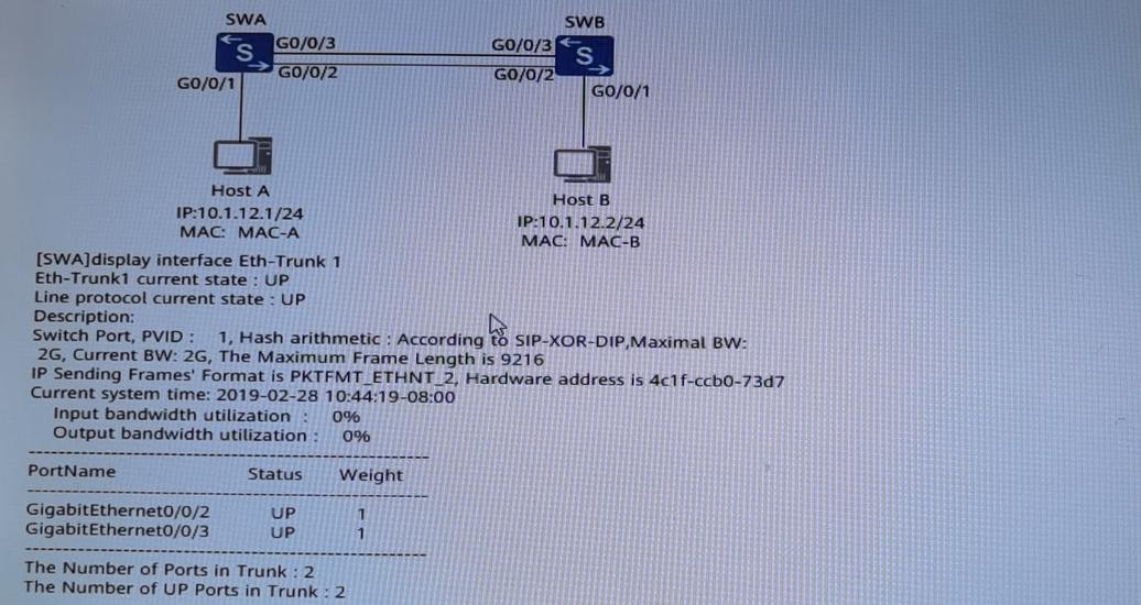 3.如下图所示的网络,交换机A输出信息如图.则在交换机A的MAC地址表中.主机B的MAC地址对应于哪个接口?(单选)