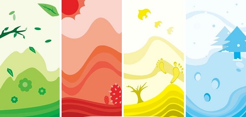8 . 如图所示,这张《春夏秋冬》的设计运用的对比方法是