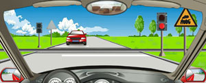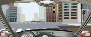 9、在路口右转弯遇同车道前车等候放行信号时如何行驶?