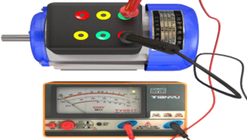 10、使用便携式绝缘电阻测试仪(兆欧表)对三相异步感应电动机绝缘性能进行测试操作, 如下图所示,根据图中所示测量结果,可判定( )?【 ☆ 】